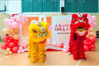 许继磊主任、周宇老师带领学生献上舞狮表演